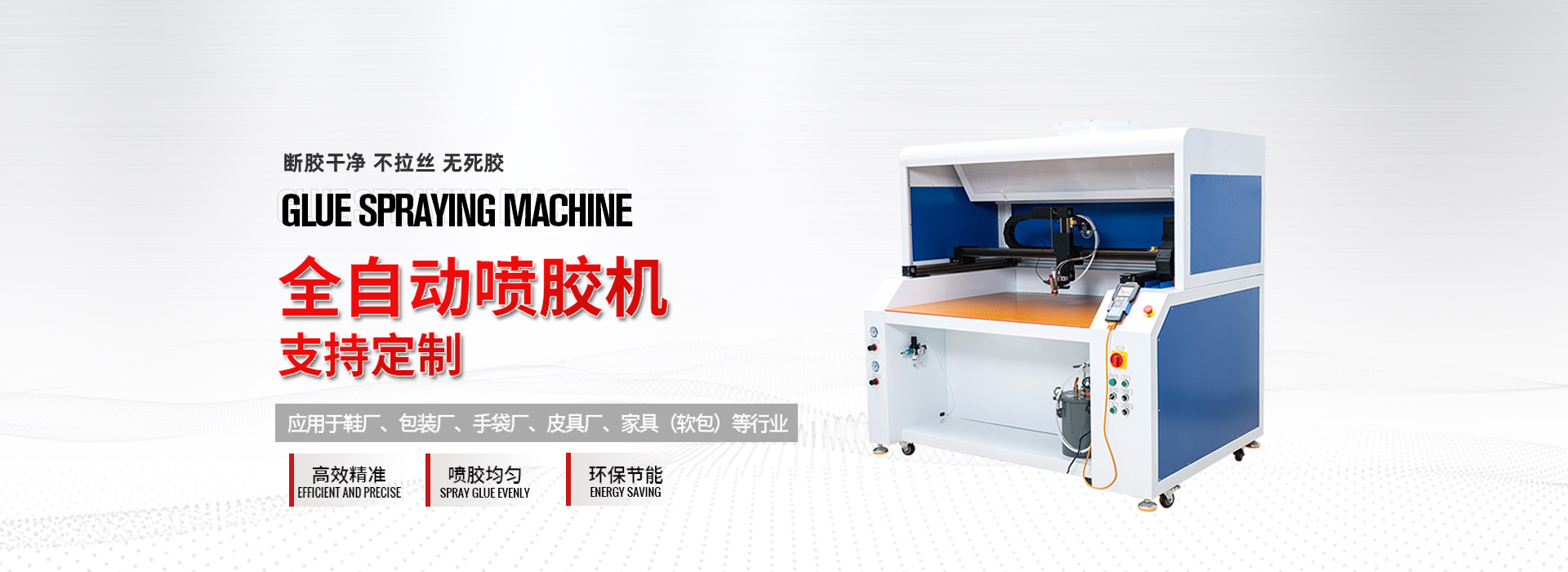 主營(yíng):視覺噴膠機(jī),視覺折邊機(jī),全自動(dòng)噴膠機(jī),全自動(dòng)上膠折邊機(jī)等